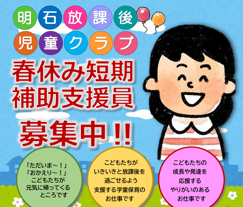 放課後児童クラブ 春休み短期補助(アルバイト)支援員を募集