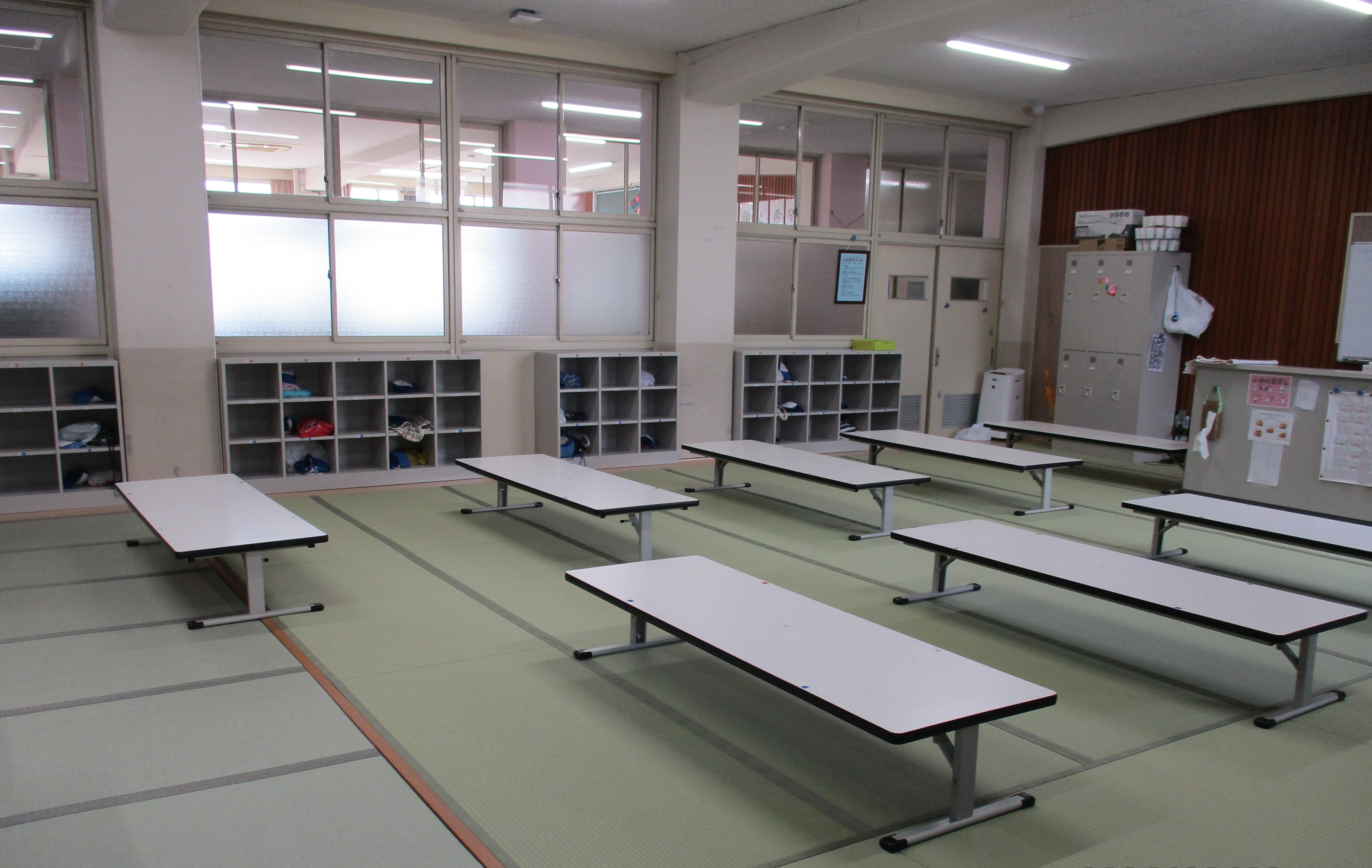 和坂児童クラブは、2020年度よりプレハブの育成室と学校の教室を利用して、2クラスに分かれて育成をしています。