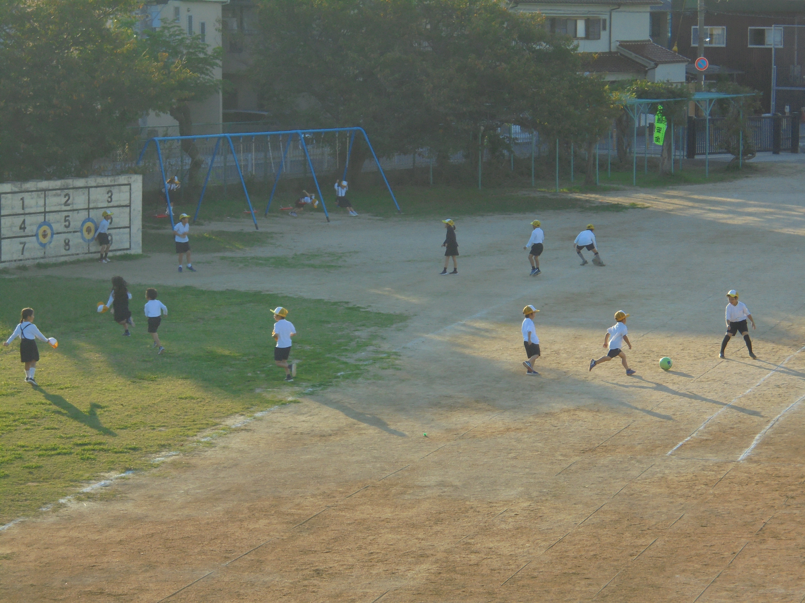 広いグラウンドではドッジボールや鬼ごっこをしたり、子どもたちで教えあって一輪車に乗れるようになったりと、異年齢の子どもたち集団の中で家族のように過ごしています。